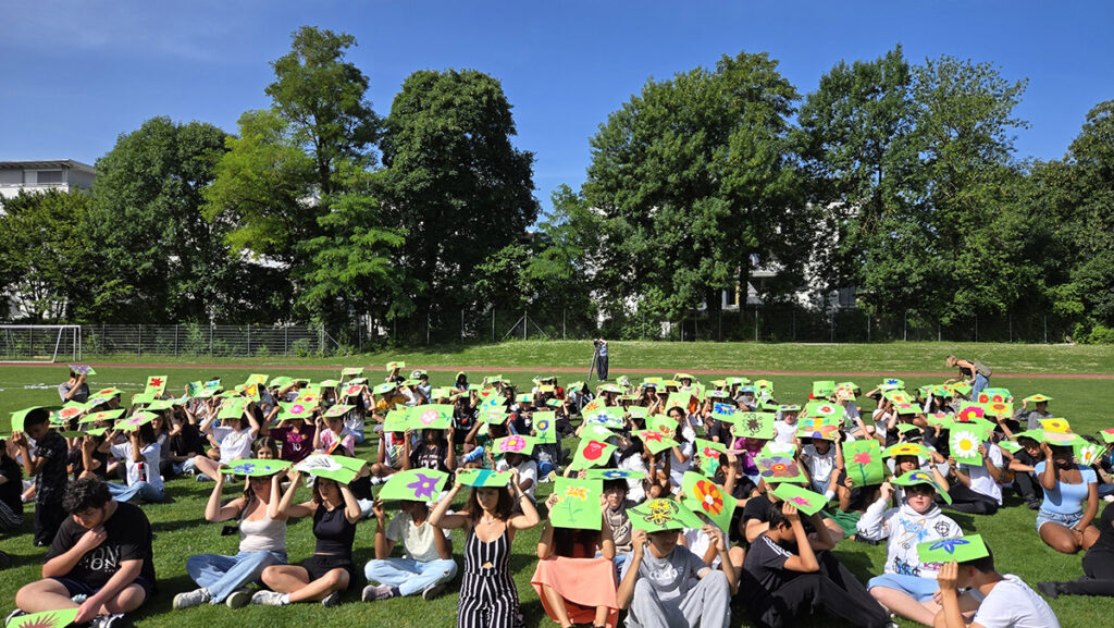 Des fleurs imaginaires tenues bouts de bras par des dizaines et des dizaines d’élèves symbolisant ainsi un très joli champ de marguerites et de coquelicots. Une explosion et les fleurs se couchent, complètement dévastées par une mine qui vient d’exploser. Cette séquence est l’une des scènes d’un film tournée par le Collège des Platanes, à Bienne.